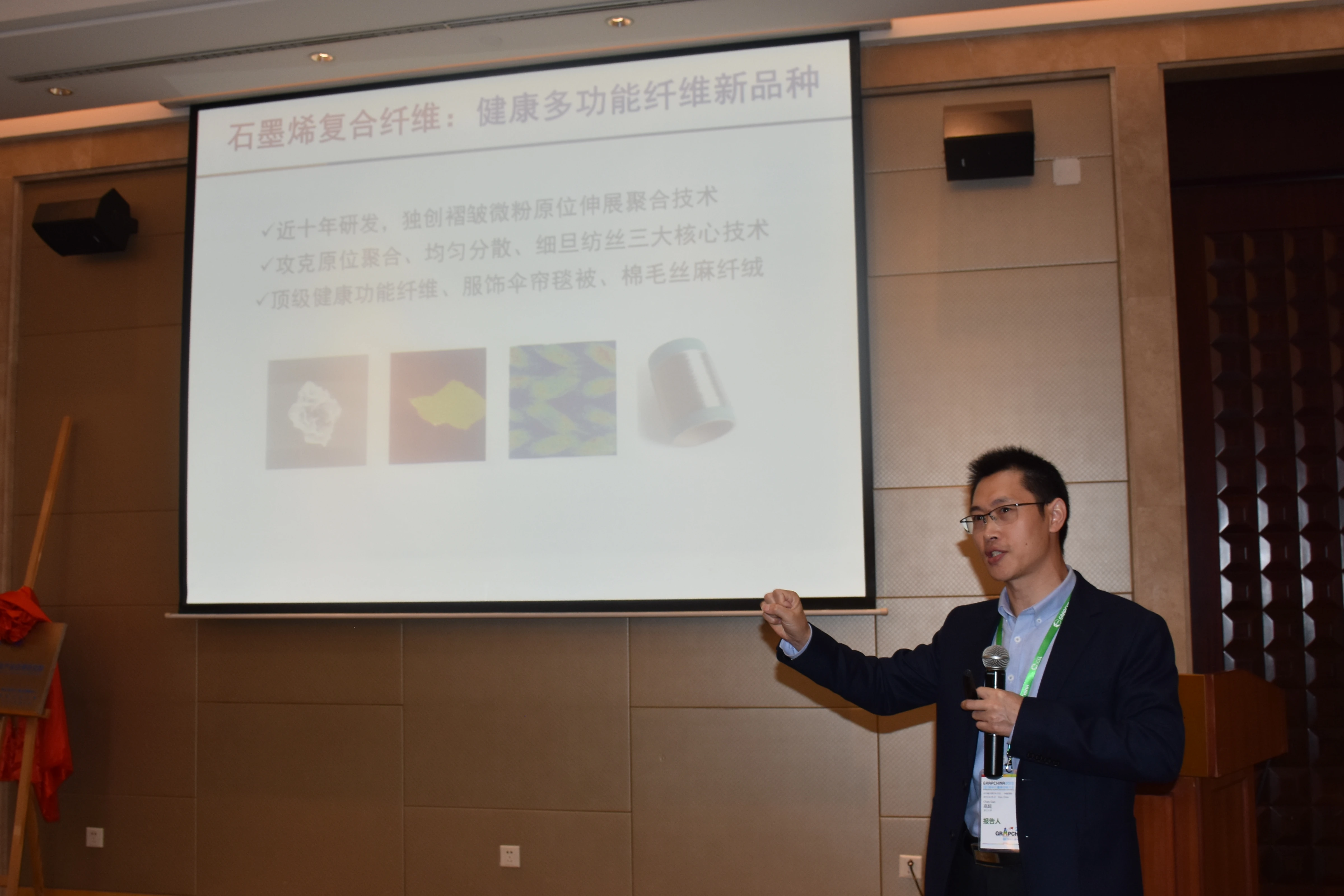 With its original products, single-layer graphene oxide, healthy graphene multifunctional composite fiber, graphene electrothermal film, graphene thermal conductive film and graphene based carbon fiber, Gaoxi Tech appeared in the "graphene + future" product life experience hall.
