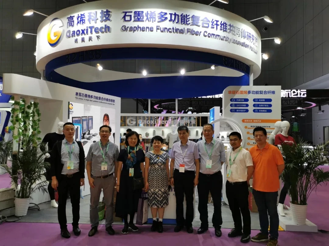 中国纺织联合会企业家协会常务副会长、北京服装学院博士导师杨俊教授一行,特意来到高烯科技展位参观指导,对石墨烯多功能复合纤维的应用价值给予了高度肯定。