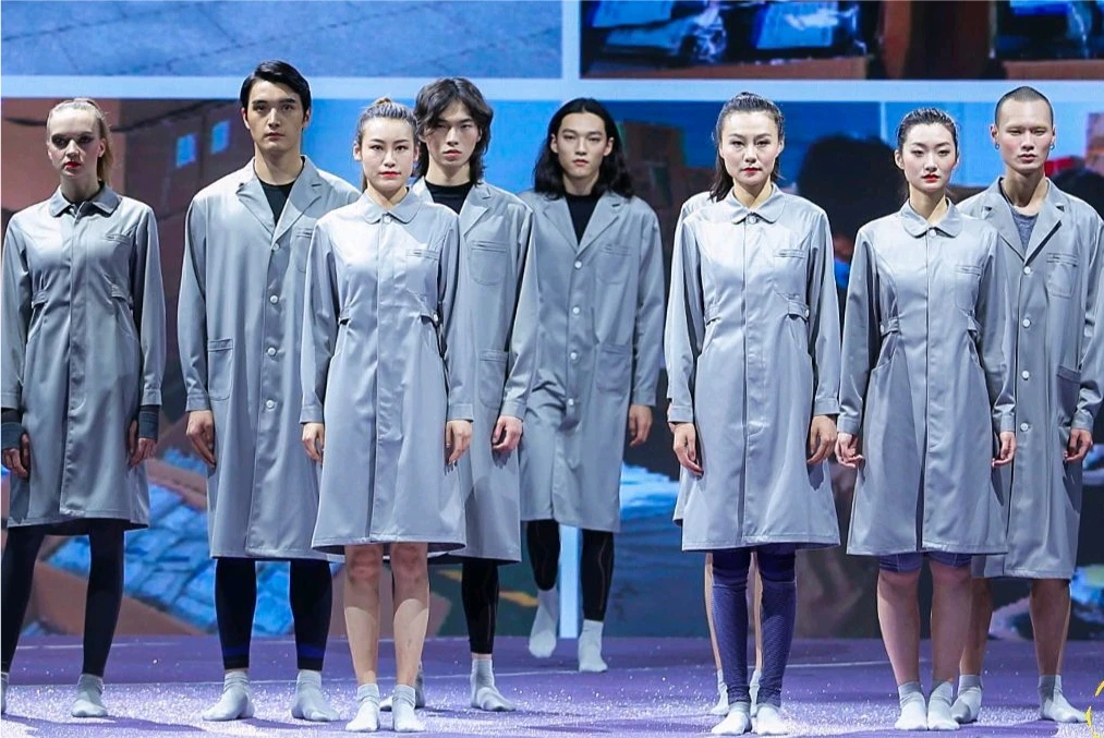 高烯科技全面布局纤维纺织品,在发布会上,推出了医务大褂和运动服装。