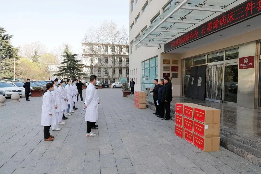 为了更好地将石墨烯纤维所具备的抗菌抑菌、抗病毒、抗螨、远红外发射、负离子发生、紫外线防护等六大功效应用到实际需求中,高烯科技与华阳新材料科技集团有限公司、山西碳烯科技有限公司合作研发出石墨烯康护纤维医用三件套(床单、被罩、枕套),交付华阳集团总医院,让石墨烯真正走进群众,守护更多人的健康。