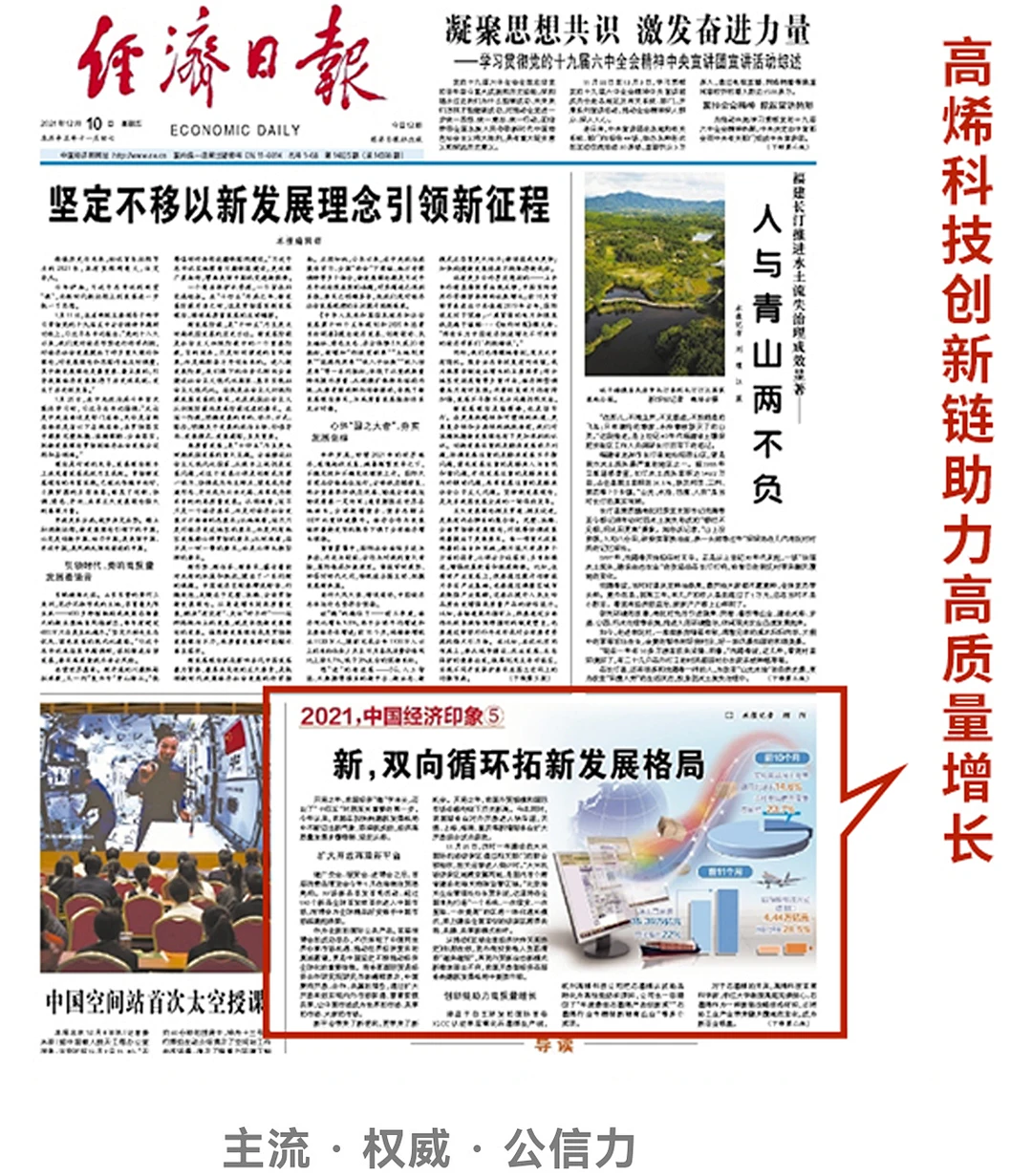 高烯石墨烯创新链同样受到国家的关注,刊登上了中国中央人民政府网及《经济日报》头版,得到了社会各界的广泛认可。