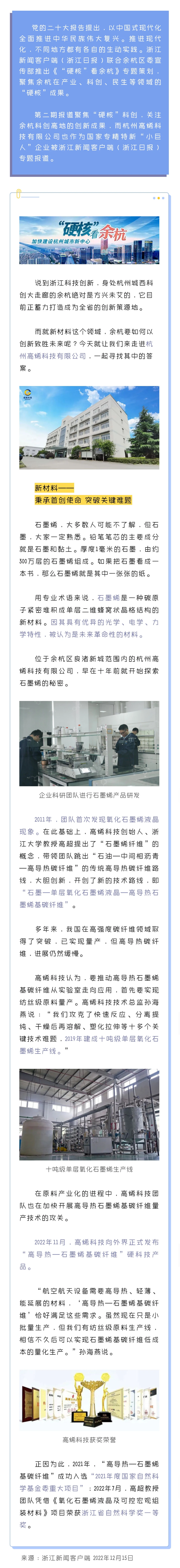 “秉承首创使命,突破关键难题”——浙江日报专题报道杭州高烯科技有限公司