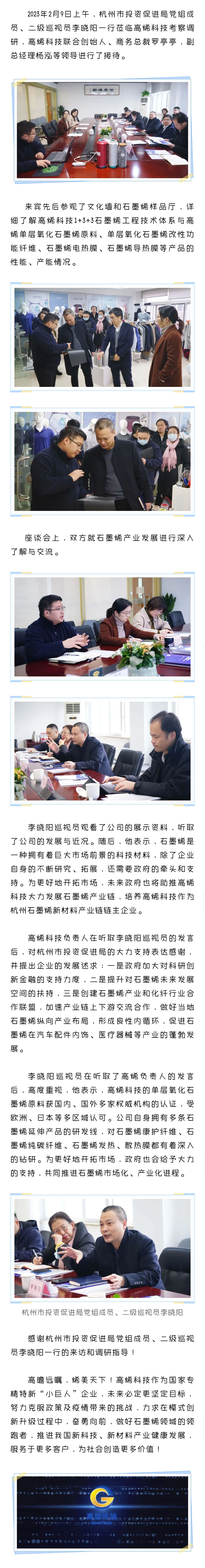杭州市投资促进局党组成员、二级巡视员李晓阳一行莅临高烯科技考察调研
