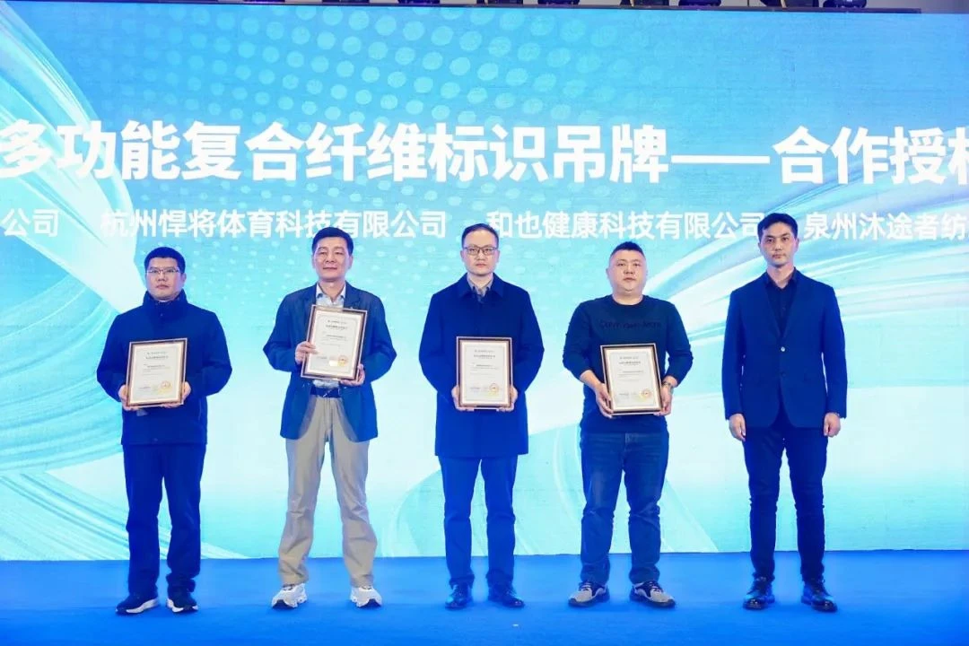 科技创新的星辰大海,从来不是独行者的征途。行业的高质量发展,离不开全产业链的协同推进。只有上下游企业共同努力,将创新真正落地到产品之中,才能让消费者切实受益,推动行业迈向新的高度。在发布会上,杭州高烯科技有限公司执行总裁何朝云为上海罗莱智家生态科技(集团)有限公司、和也健康科技有限公司、杭州悍将体育科技有限公司、泉州沐途者纺织科技有限公司等首批获得石墨烯多功能复合纤维标识吊牌授权的企业颁发证书。