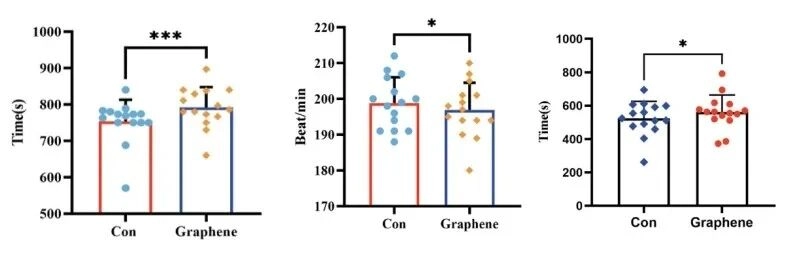 图3:石墨烯紧身衣的运动时长、无氧阈值、最大心率研究结果