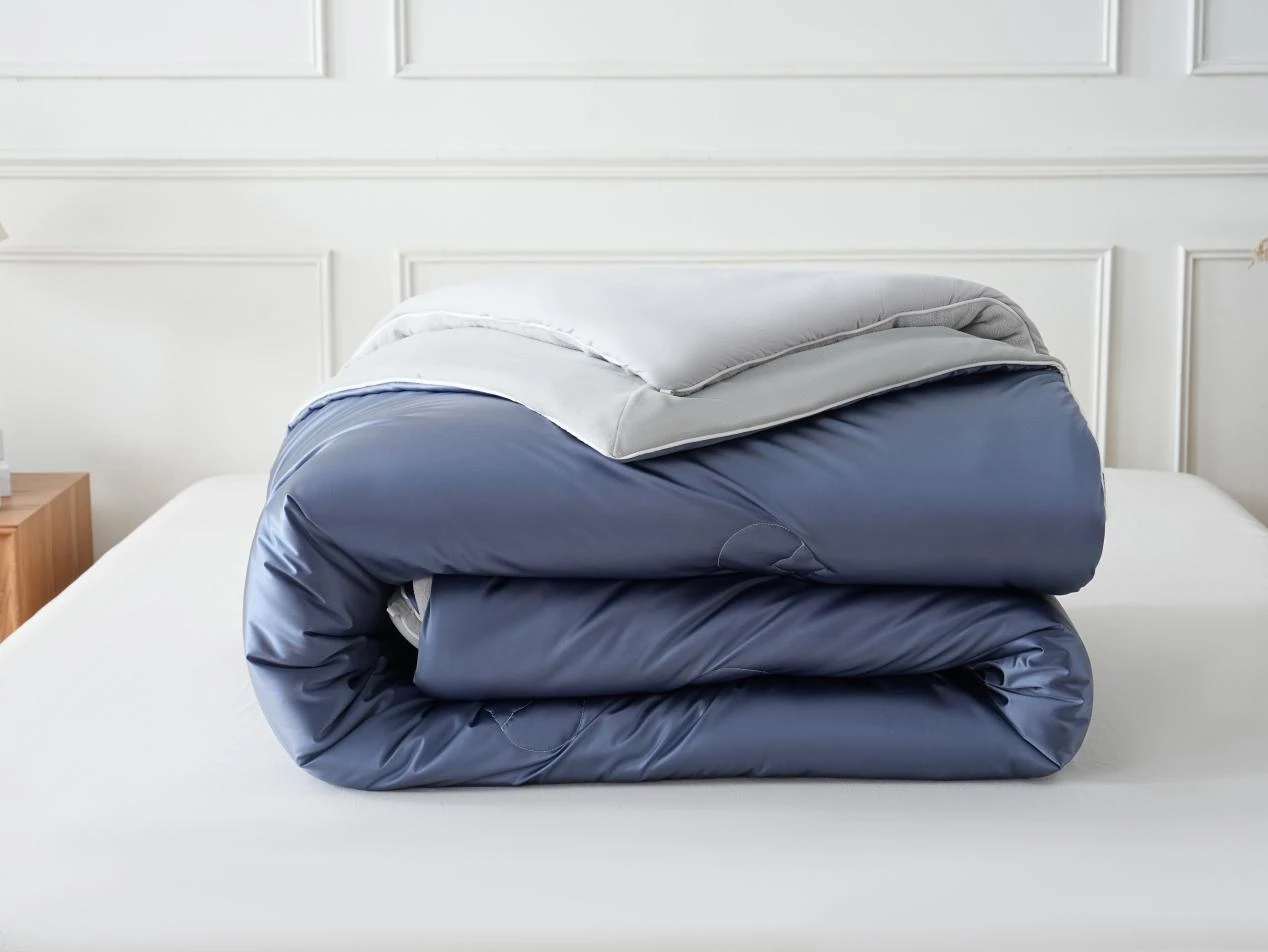 子被:凉感锦氨油光针织面料+温感针织汗布,填充50%石墨烯涤纶+50%聚酯纤维,总重481g。