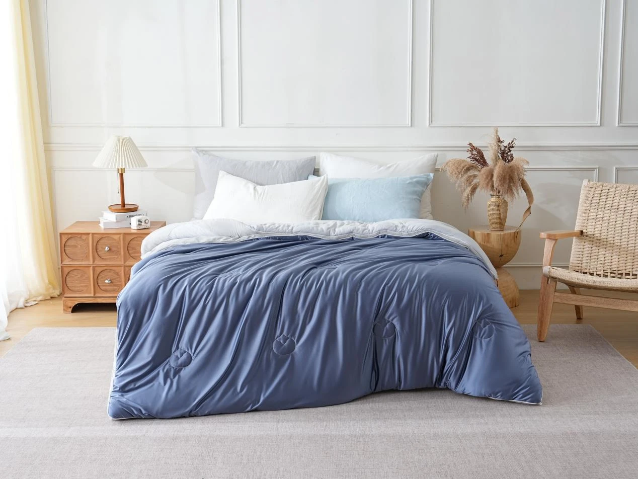 冬季(5-15℃):单盖母被,厚填充应对严寒,A版用磨毛布,锁温不钻风;B版用温感汗布,冬季贴肤柔软